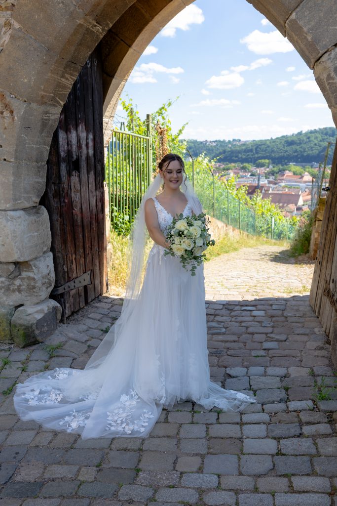Nach der Trauung haben wir im Schloss noch ein paar Paarfotos gemacht, damit die Gäste draußen Ihre Überraschung vorbereiten konnten. Als die beiden aus dem Schloss kamen, standen die Gäste mit Seifenblasen Spalier und haben das Brautpaar gefeiert.