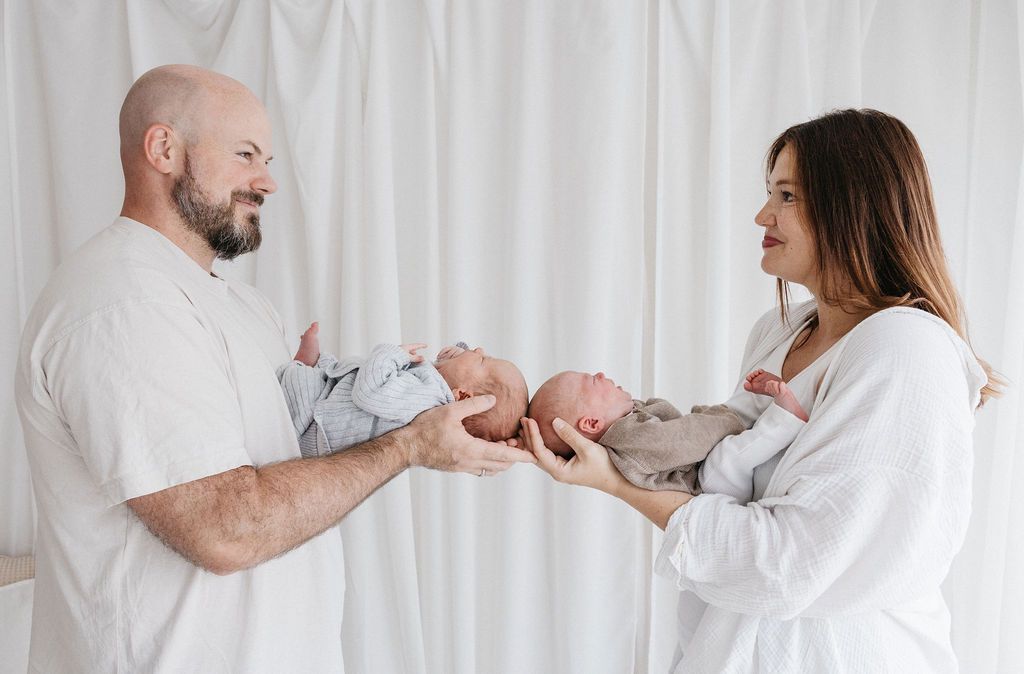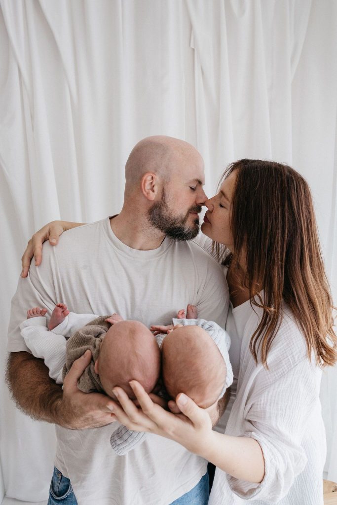 Auch die Eltern oder Geschwisterkinder können super in dieses Setup mit eingebunden werden. Neugierige Geschwister, die über den Korbrnad schauen oder die Mama, die schützend die Hand über Ihr Baby legt.